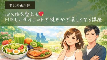 婚活部第56回♡ 心と体を整える 正しいダイエットで健やかで美しくなる講座 婚活部は、「出会いと学び」をテーマに、これからの人生をより豊かにしていくための時間を共有する場です。 今回のテーマは、ダイエット&健康。 「ダイエット=我慢」や「つ...